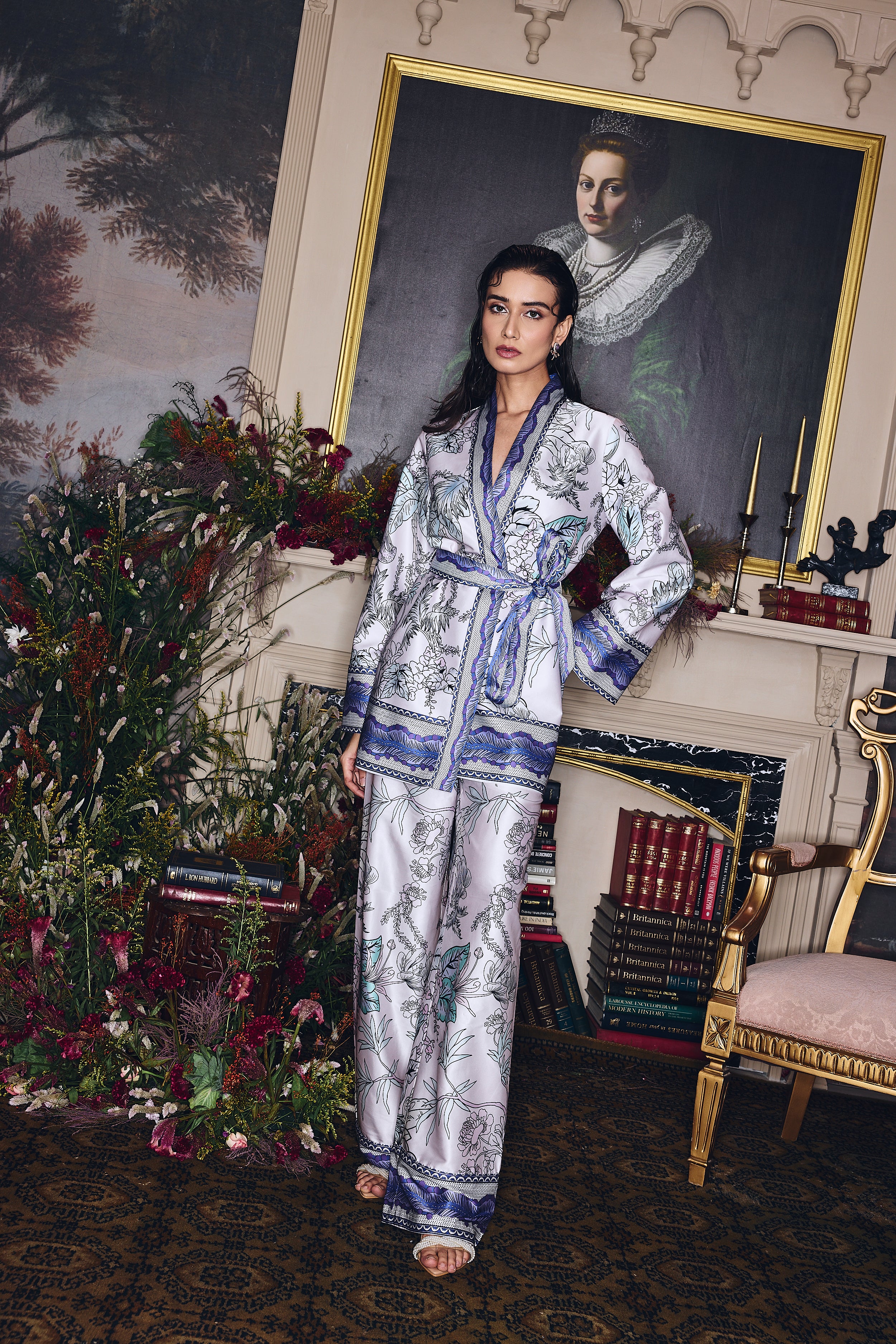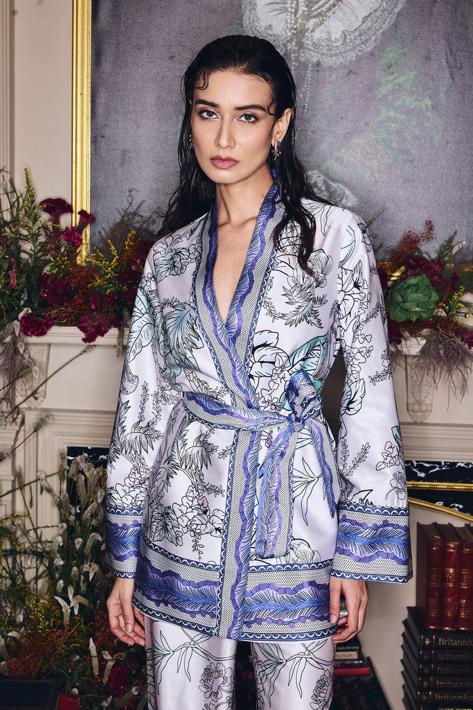 A printed kimono and pants co ord that does the most. The Anya co ord is breezy and refined with a blend of luxe and lounge, cut in silky satin back crepe that feels as good as it looks. Pair with your slip ons or heels for the full statement-or tone it down with a tank top.