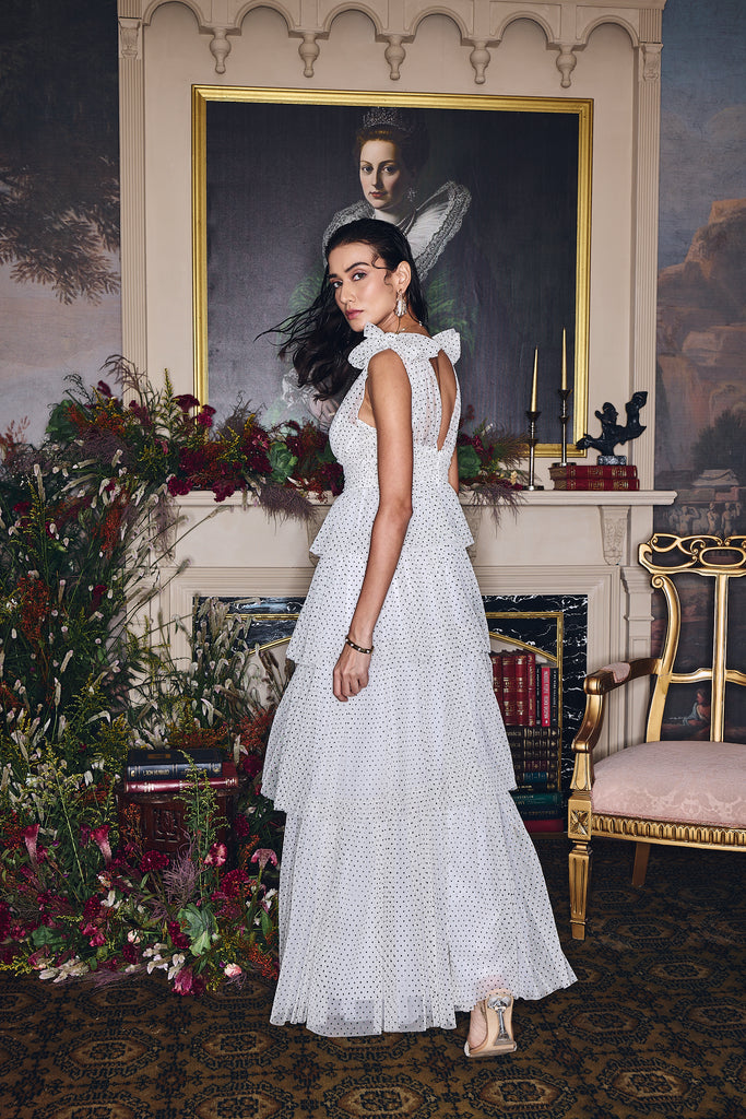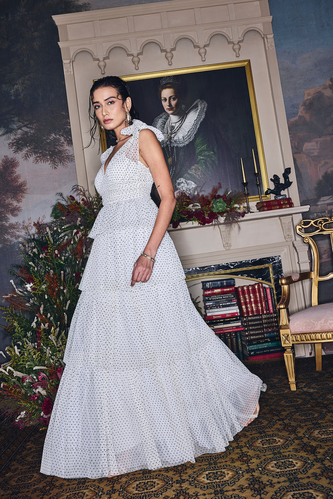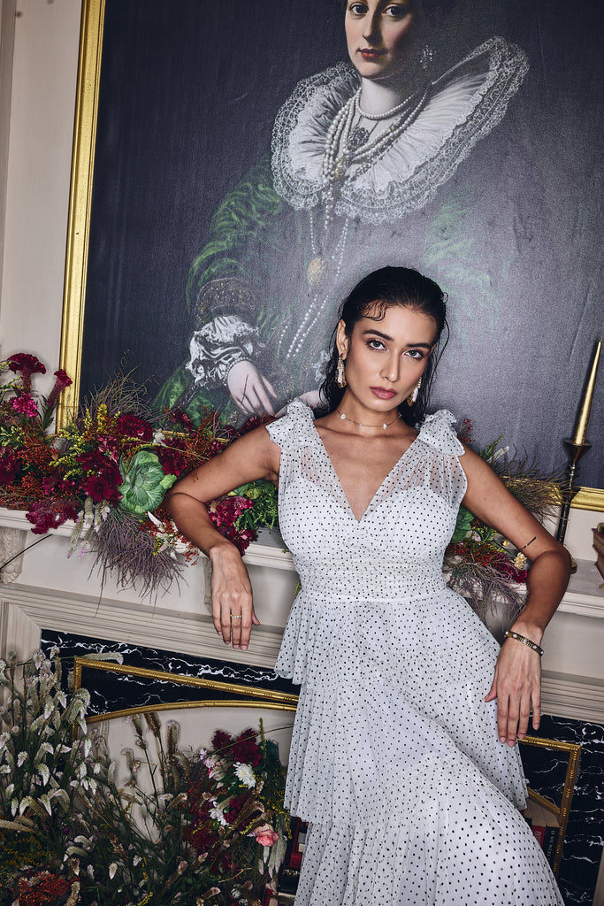 A piece that makes you fall in love. This heat set printed maxi dress stuns in a classic print that brings back the glory from 70's The plunging V-neckline and romantic back hug just right, while the flowy silhouette moves with every breeze. Finished with a hidden zipper for ease, it’s made for special dinners, rooftop cocktails, and every photo op in between.