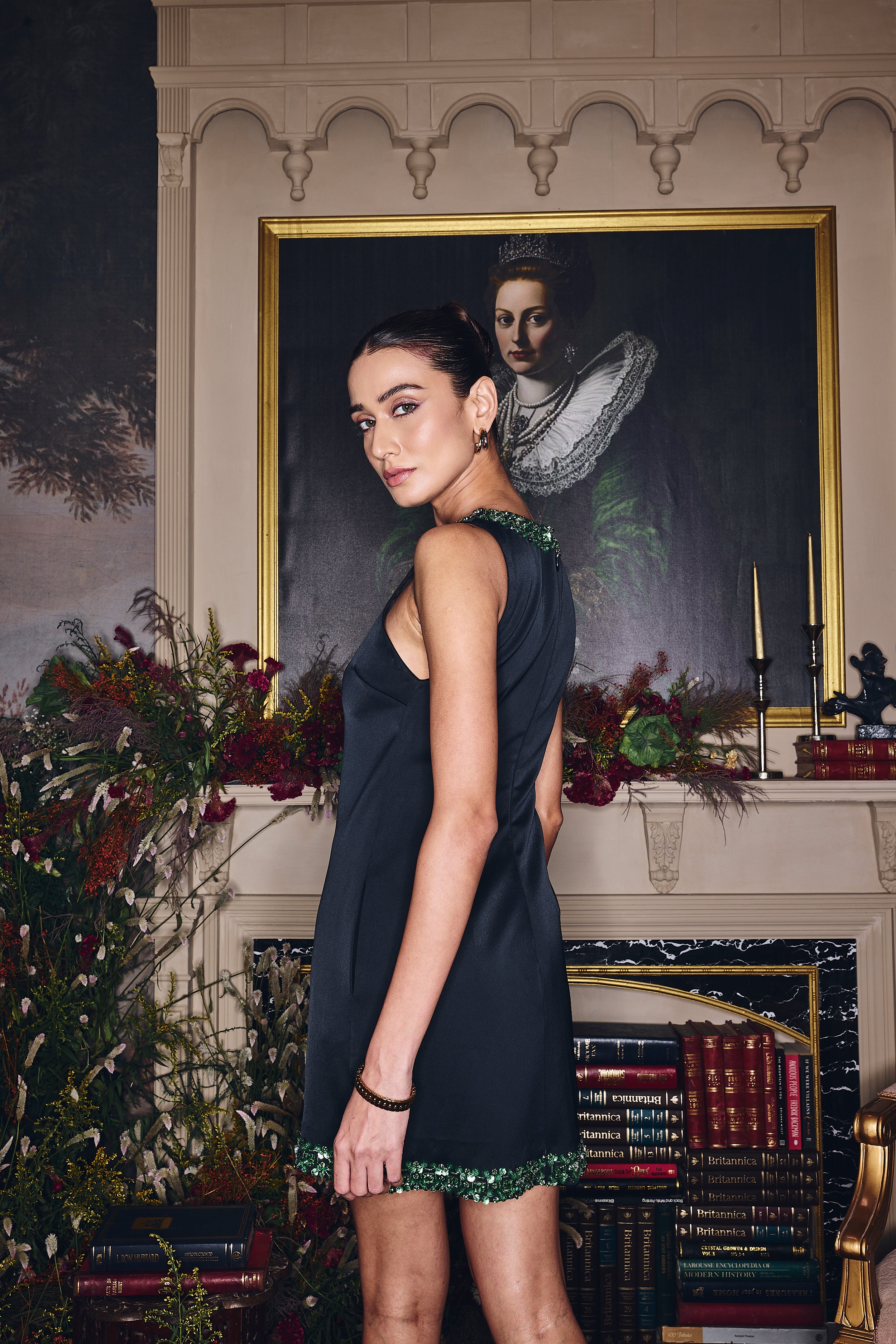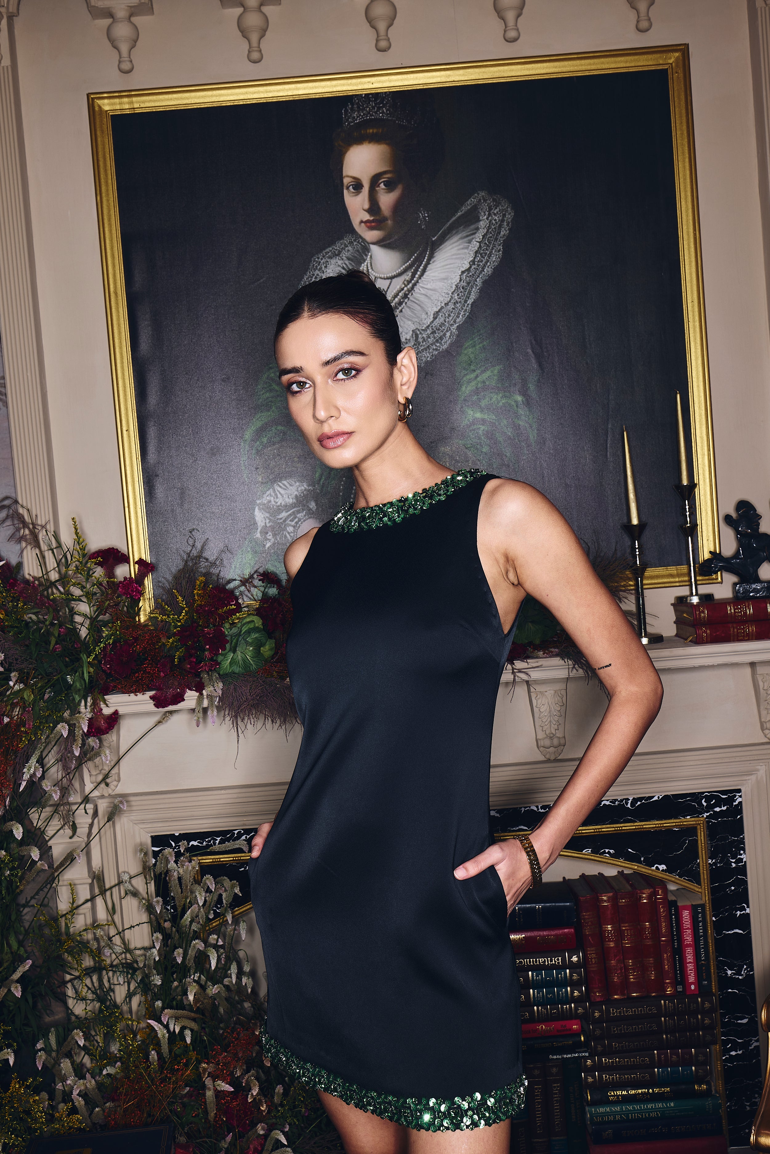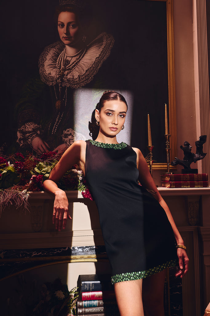 Feminine and intricately embellished. Structured in a classic shift fit with a subtle A-line silhouette, Edris is flattering and ultra versatile. Wear her with high heels or your favorite flats.