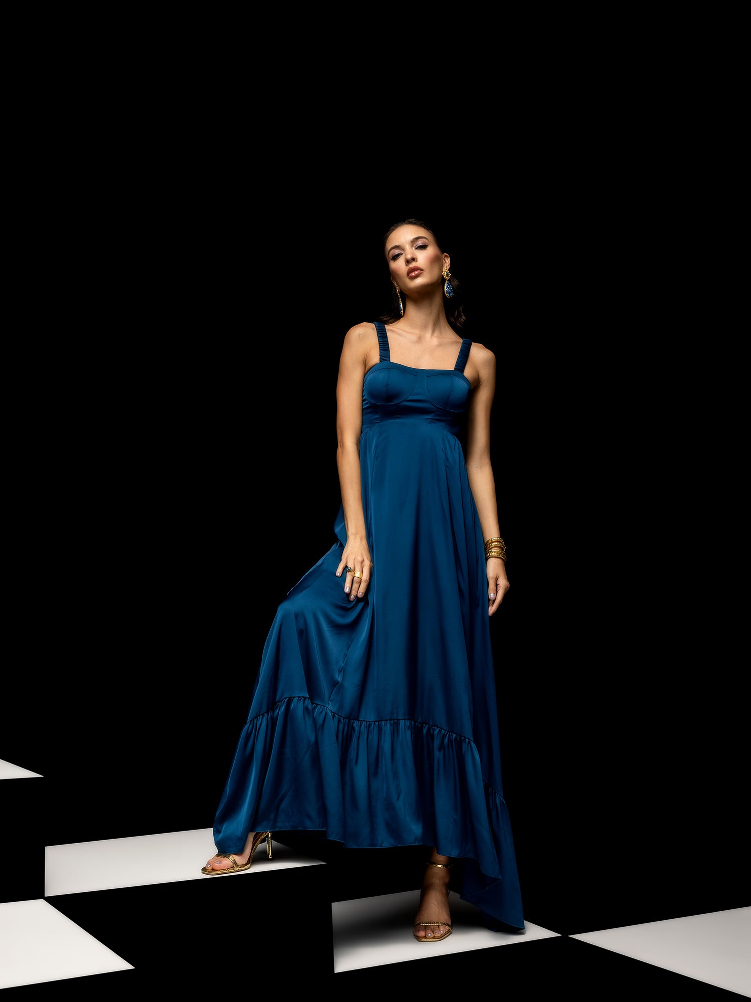 Hit a fashion high note with an impactful and carefully set tailoring. Crafted with silk satin charmeuse and a fitted bodice, this dress ties at the waist for a flattering touch, while the asymmetrical hemline completes the style.