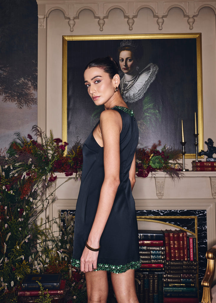 Feminine and intricately embellished. Structured in a classic shift fit with a subtle A-line silhouette, Edris is flattering and ultra versatile. Wear her with high heels or your favorite flats.