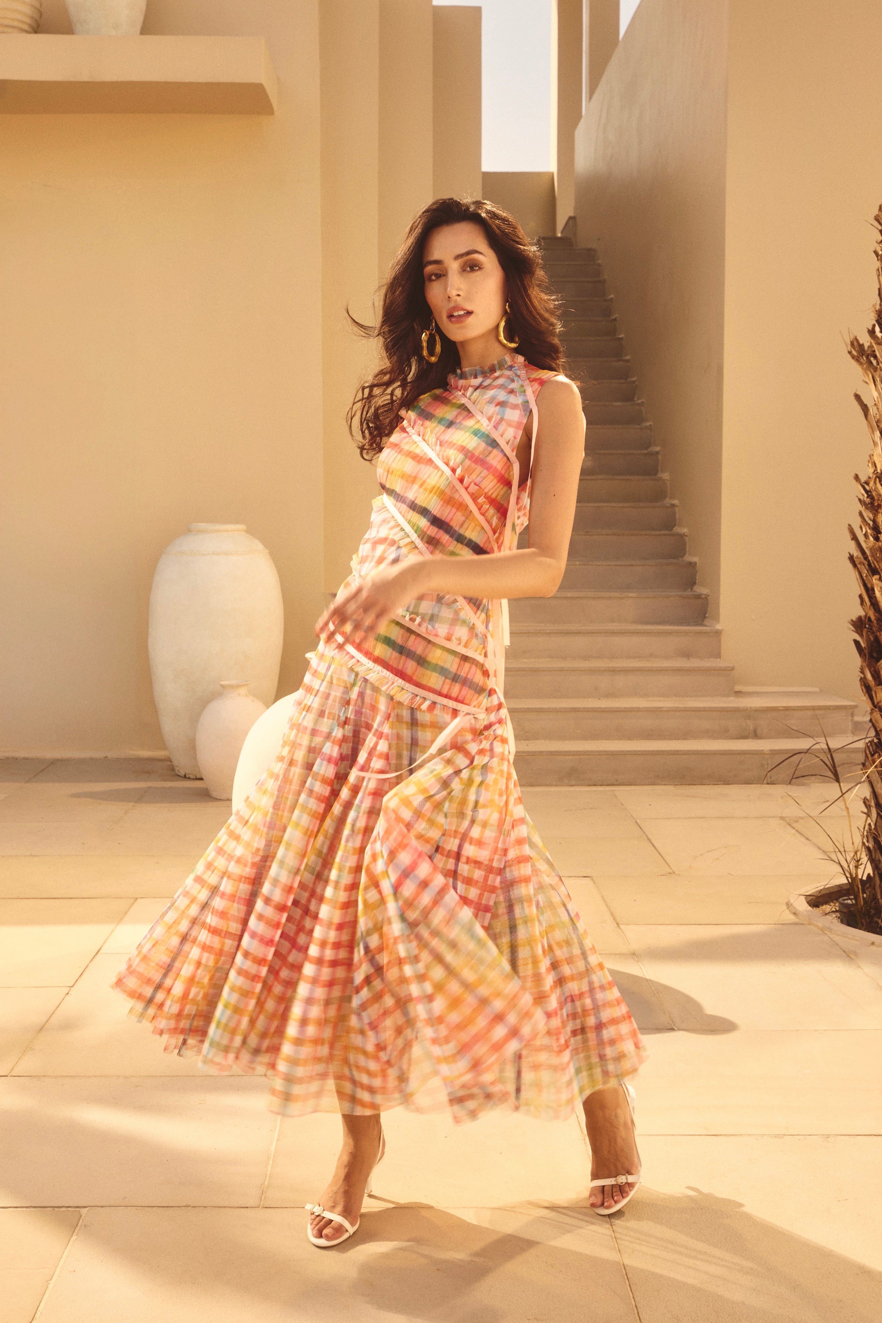 A gorgeous dress is a true essential for summers and we think this one is a cut above the rest. It’s made from a soft textured tulle and features so many intricate design details that need to be seen upclose! A smocked mock neckline to hand done pintuck details onbodice, opening to a full skirt, ruffles spilling down its waterfall hemline. And it’s lined for full coverage.