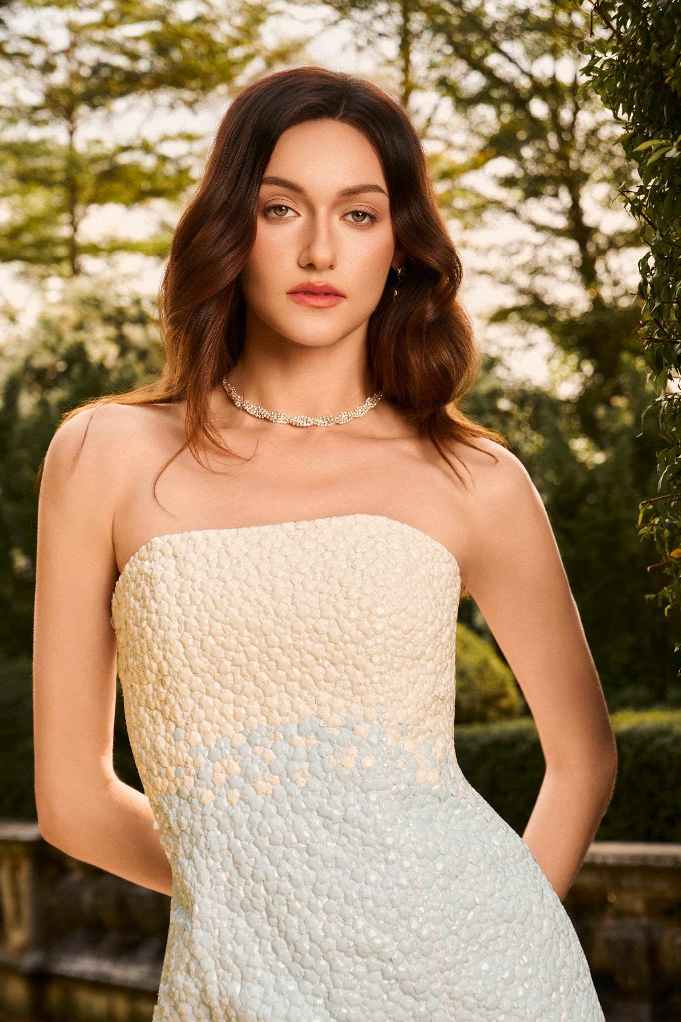 A truly major mini. Our Siena pairs a intricate 3D cut french sequin giving illusion of an ombre mosaic crafted on matte-satin base that forms delicate motifs--all while keeping the silhouette clean, modern, and sculpted. The strapless neckline, inner grip, and smocked back give it that perfect stay-put fit for big nights out. Add statement earrings and a sleek heel--all eyes will be on you.