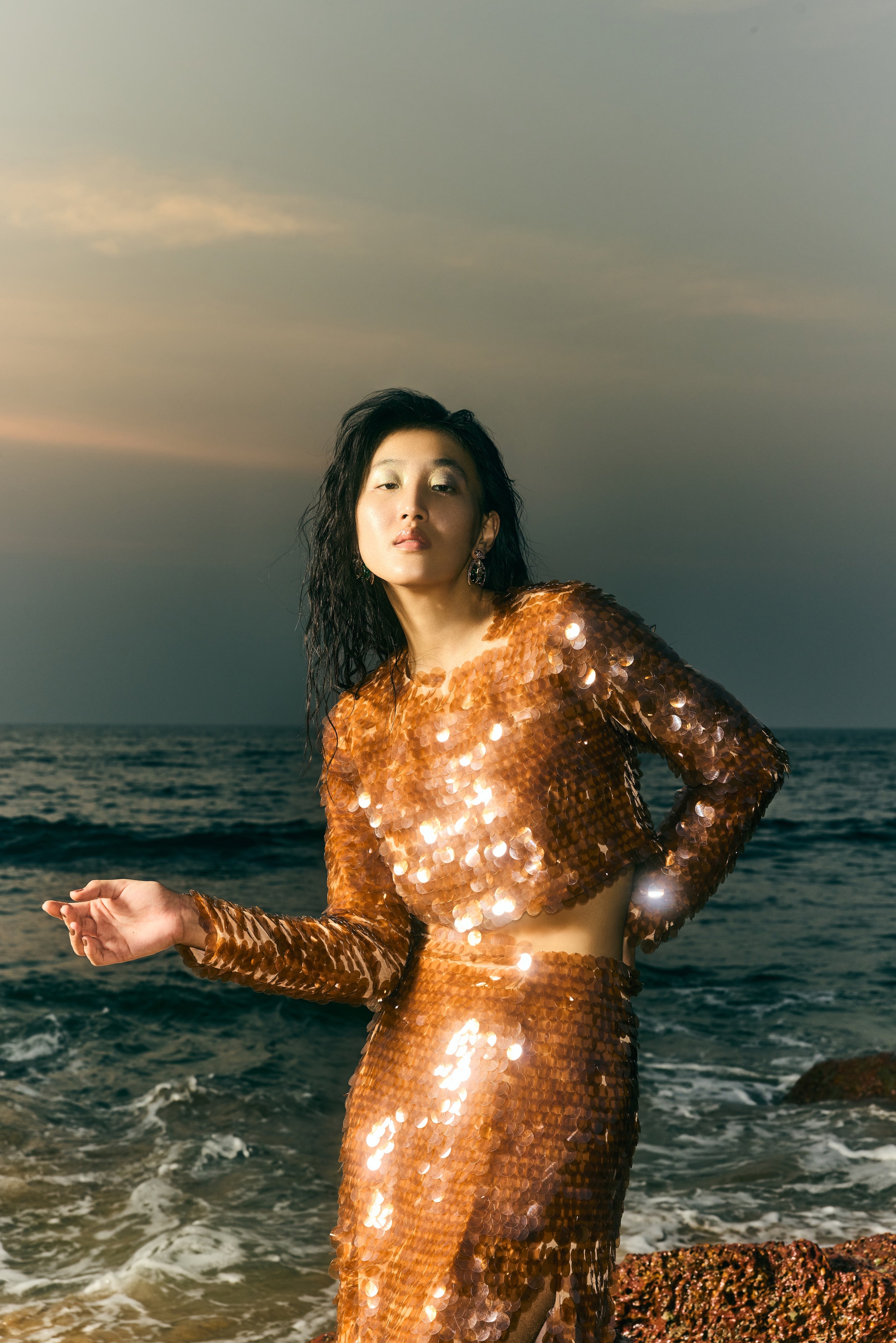 This co ord is so beautiful yet versatile, with hand done coin sequin embellishments, the top could dress up jeans and skirts whereas the skirt top go perfectly well with either of your tops