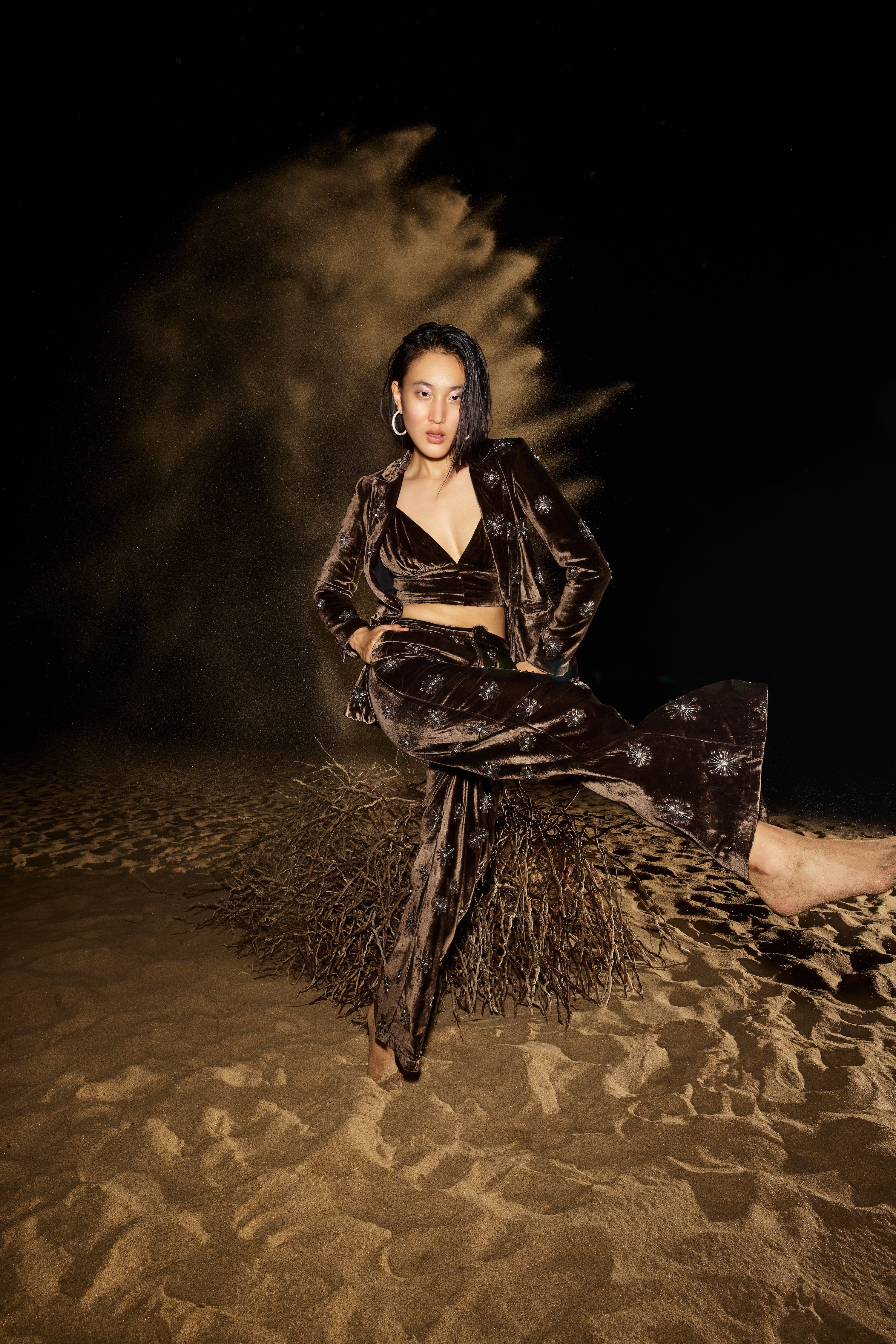 This blazer and pants set takes a closet staple to a whole new level with those embellished clusters of glass beads and acrylic stones. We love the strong shoulders that instantly elevate your look to boss babe status.