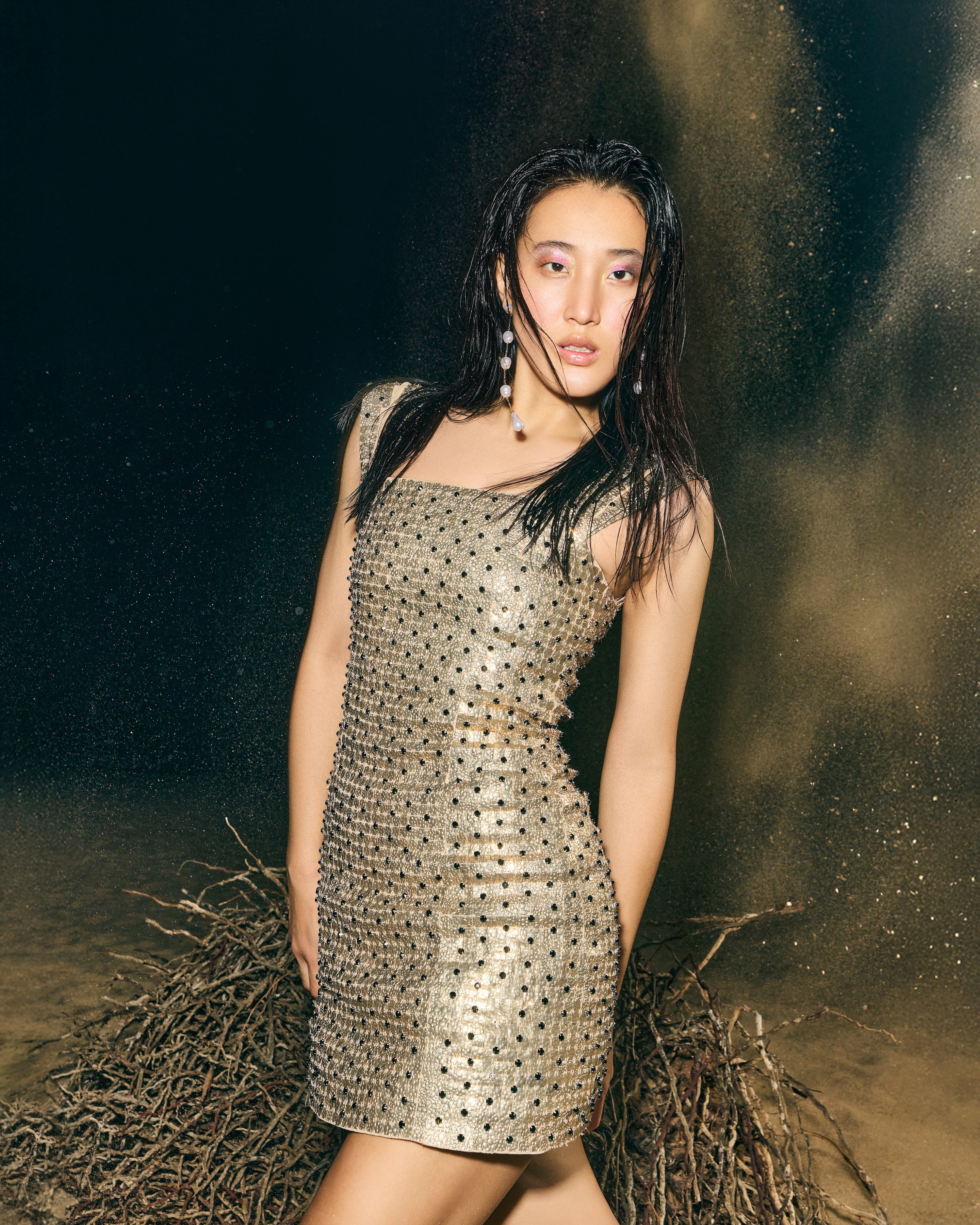 This minidress is a total stunner with embellished metallic sequins with crystals throughout. It features a slim, flattering fit, a squarred neckline and fitted waist. It's a little '60s mod in the very best way.A throw-on-and-you're-dressed best.