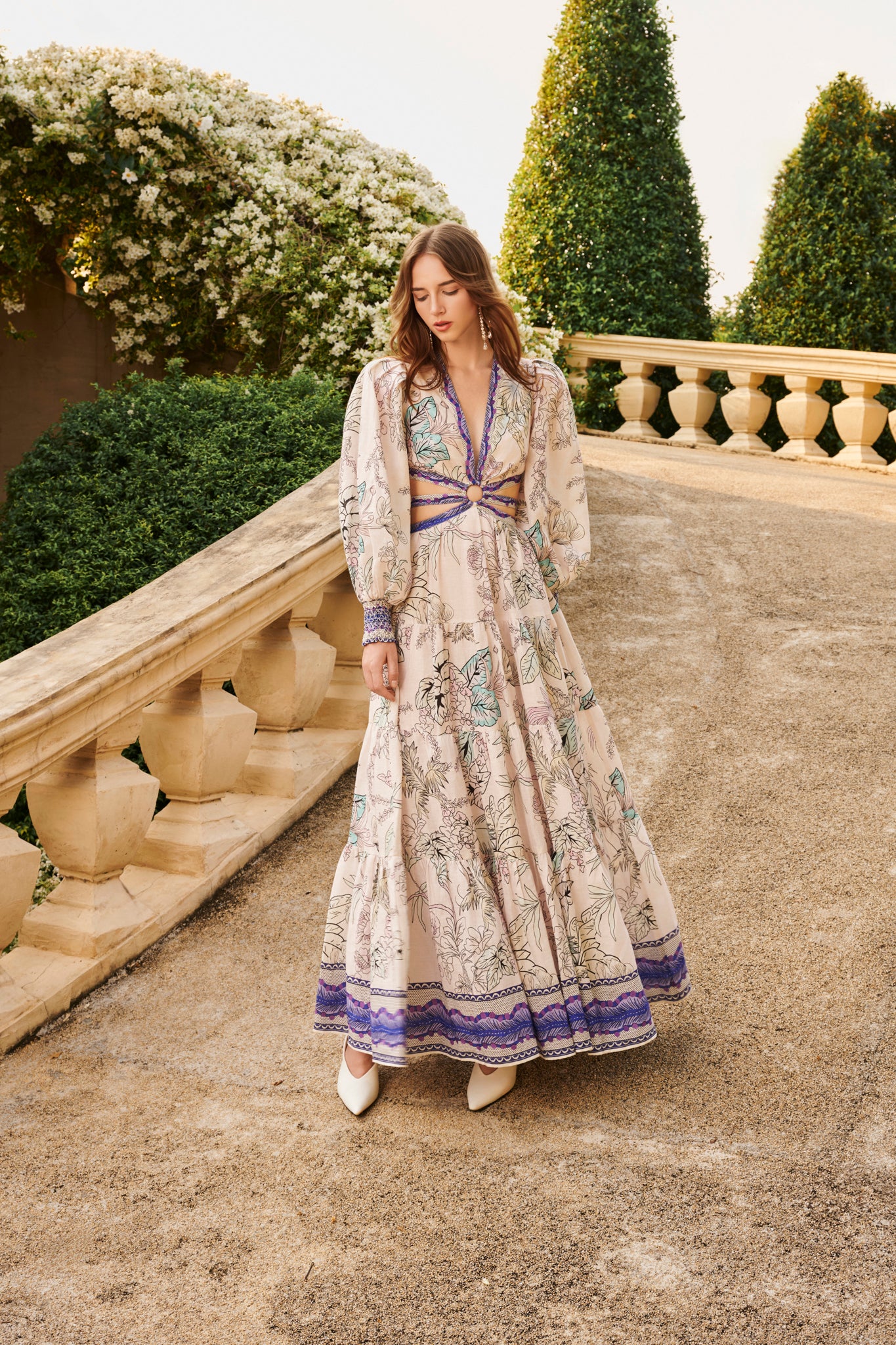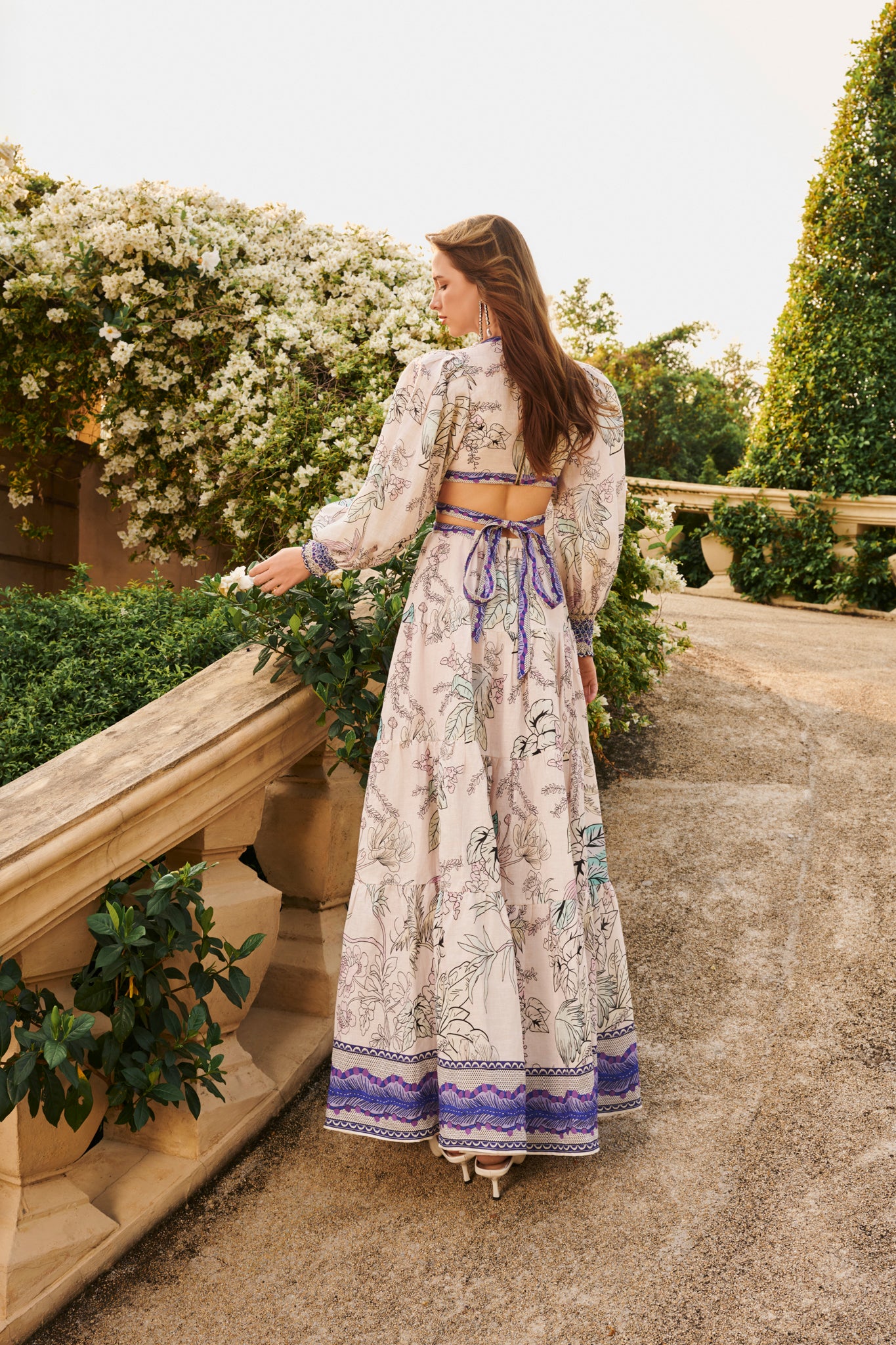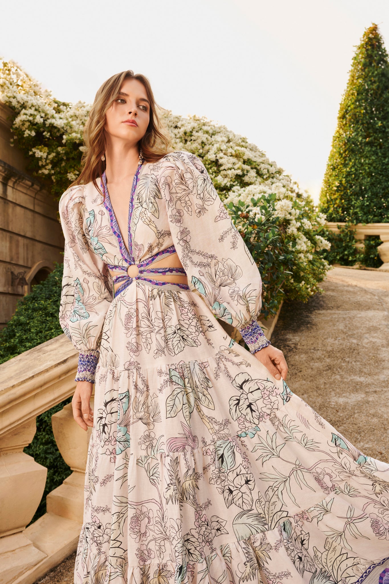 Romance meets edge in this moody floral stunner. The Amyra midi dress dress is crafted in a beautiful linen with soft blouson sleeves, a plunging neckline, and a waist that cinches just right. A subtle back cutout adds intrigue, while the midi length keeps things versatile. Wear it with boots during the day and with heels at night-this one does both beautifully.