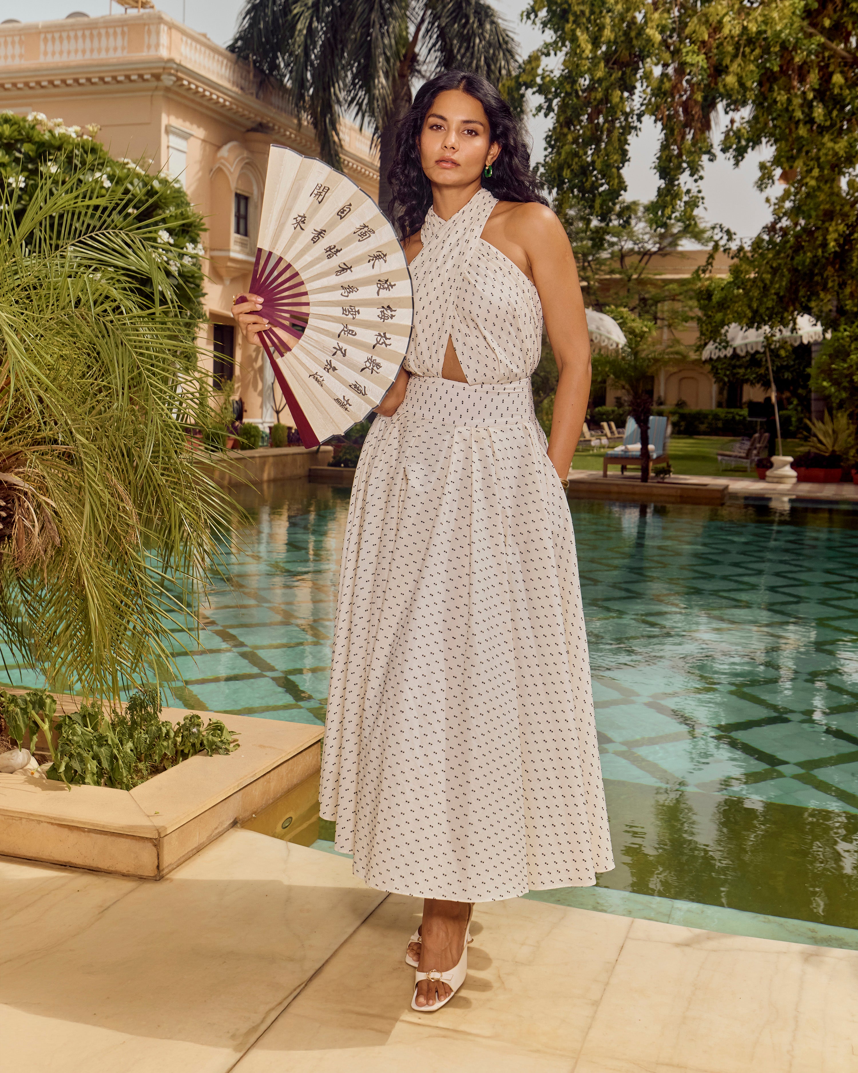 This one’s a stunner- from every angle. Designed with a Versatile neckline and flowy hem, this halter midi dress cinches at the waist for a perfectly flattering fit. But the real moment? The open back, versatile front that can be styled into a front tie knot or back. It’s the kind of detail that makes people turn their heads (and ask where you got it). Fully lined for coverage, finished with pockets for comfort, and ready for any event that calls for a little extra magic.